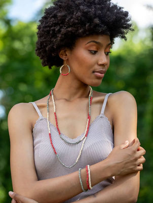 The Sachi Collection is an assortment of contemporary and youthful jewelry. The components of this jewelry are mixed materials such as cotton, satin and wool threads, wood beads, glass seed beads, sea-shells, etc. Using this variety of materials, our artisans are able to create mini-collections of jewelry that are unique while following contemporary trends and colors.